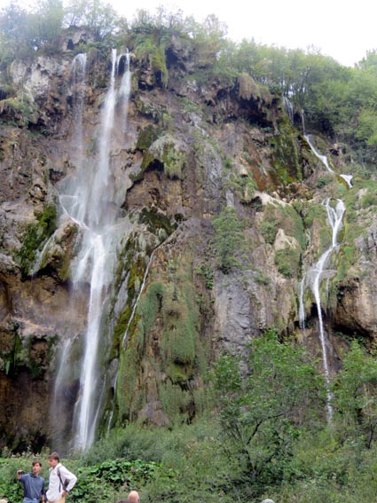 Nous arrivons finalement à ce qui devait être le clou du spectacle : la grande cascade : "Veliki Slap"... Cette chute d'eau de 78m de haut nous déçoit un peu, car le débit est très faible... Il faut oublier les merveilleuses cascades que nous avons pu voir au cours de notre Grand Tour Nordique avec l'agence Thellier Voyages, sans parler de la cascade de Gavarnie par exemple...
