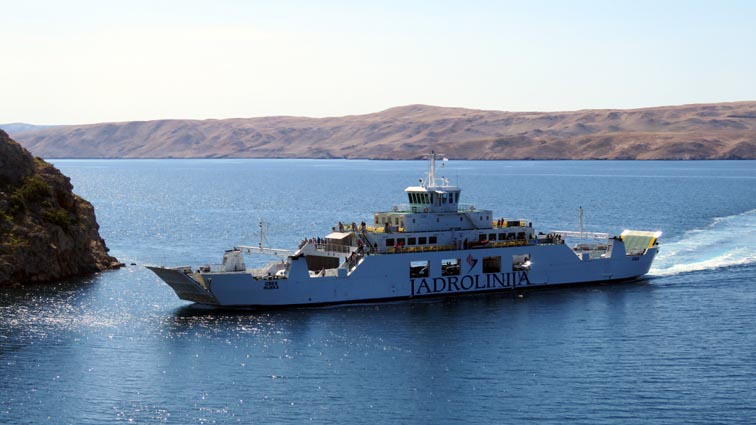 Nous embarquons sur un ferry à Gradina, pour rejoindre l'île de Pag.