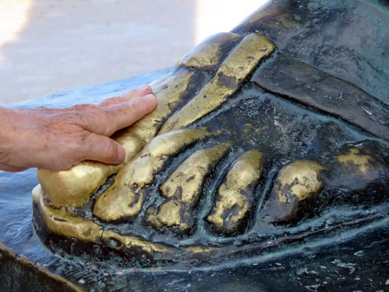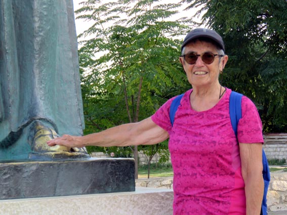 Toucher le gros orteil de la statue de Grégoire de Nin porterait chance, voila pourquoi le bronze est aussi brillant dans cette partie de son pied. Christiane ne manque pas de procéder à cette tradition...