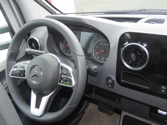 Mercedes Sprinter - puissance 170 cv - Euro VI-E Essieu avant renforcé Feux LED haute performance Boite de vitesse automatique 9G-TRONIC incluant la fonction Hold Régulateur de vitesse actif DISTRONIC PLUS avec commandes au volant Volant cuir multifonction Frein de stationnement électrique Bande filtrante thermo-isolante sur pare-brise Pack Acoustique Mercedes-Benz Climatisation semi-automatique TEMPMATIC Instrumentation combinée avec écran Pixel-Matrix Mercedes-Benz Détecteur de franchissement de ligne Assistant vigilance du conducteur Détecteur de pluie Assistant reconnaissance des panneaux de signalisation Système multimédia MBUX avec navigation, intégration pour smartphone, commande vocale et caméra de recul Airbags conducteur et passager Stores plissés de cabine Jantes alliage 16" (coloris noir) avec pneus quatre saisons Réservoir gasoil 65l