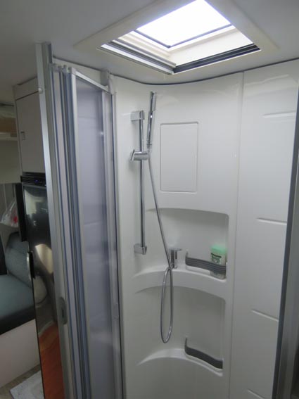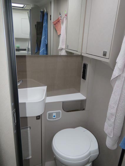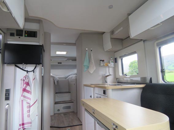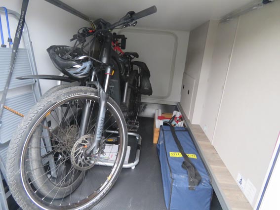 Toit en polyester renforcé de fibre de verre servant de protection supplémentaire contre les intempéries et la grêle, empêchant les dommages sur le toit. Soute- garage (chauffée) traversante à 2 portes : droite 108*79, gauche 75*85 Fixation des vélos à l'intérieur de la soute-garage, et 2 prises 220 volts reliées au convertisseur pour charger les batteries des vélos à assistance électrique. Porte cellule confort à fermeture 2 points avec baie, store occultant et poubelle intégrés Store extérieur 4m Panneau solaire 160W Antarion Batterie de service au lithium-ion 200A ANTARES Régulateur de tension Infosec R2PRO / 2000VA Convertisseur "pur-sinus" 2000W TV LED 22" connectée Réfrigérateur Jumbo 160 litres avec congélateur, à sélection automatique d'énergie Réservoirs isolés et chauffés (eau propre 110l - eaux usées 100l) Plaque de cuisson 3 feux, alimentée par une bouteille de camping-gaz (2 bouteilles modèle 207 placées dans le compartiment gaz) Salle de bain avec douche séparée à portes rigides battantes. Le cabinet de toilette est séparable de la partie avant avec la porte des toilettes. WC à cassette Lit de pavillon électrique au-dessus de la dînette Lits jumeaux à l'arrière (202 x 83 cm et 202 x 83 cm), avec draps-housses sur mesure, adaptés aux contours du matelas