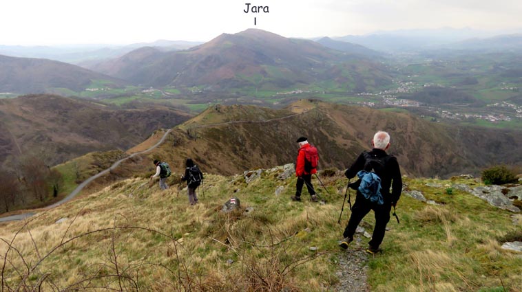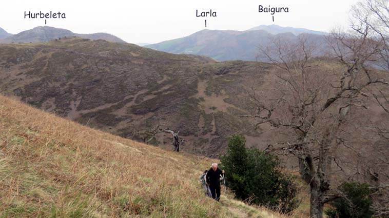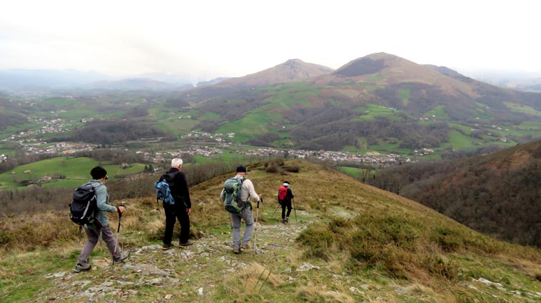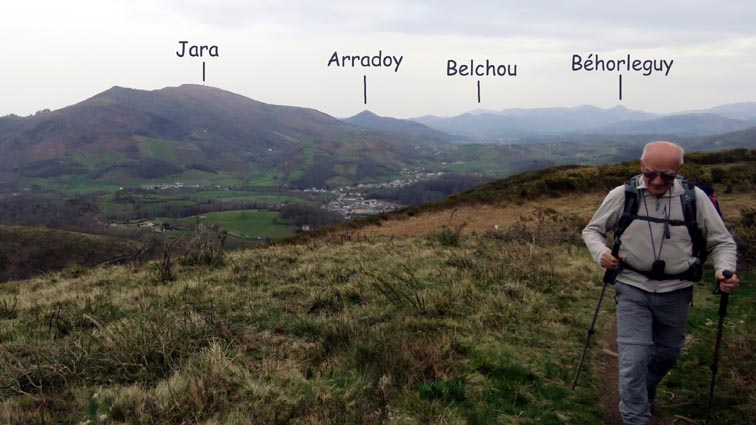 Nous démarrons d'Itxassou à 9H00, et prenons la D918 en direction de Saint-Jean-Pied-de-Port jusqu'à Ossès. Au niveau de Saint-Martin d'Arrossa, nous prenons la D948 sur la droite pour rejoindre Saint-Etienne-de-Baïgorry. En arrivant à Baïgorry, nous passons le quartier Eiheralde, puis au cœur du quartier Lesparze, nous tournons à droite sur la route nommée "Auzottipiko bidea". 250m plus loin, nous prenons la route interdite aux véhicules de plus de 6 tonnes qui monte sur la gauche. À 450m, nous tournons à droite sur "Irubeko bidea", et nous nous garons 750m plus loin, sur un terre-plein qui se trouve sur le côté droit de la route. |