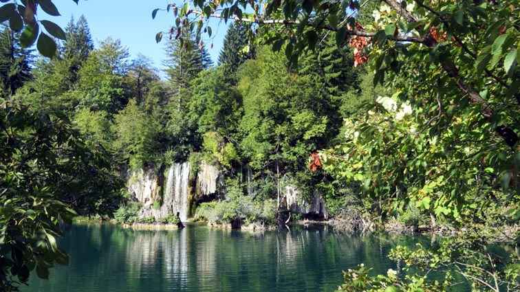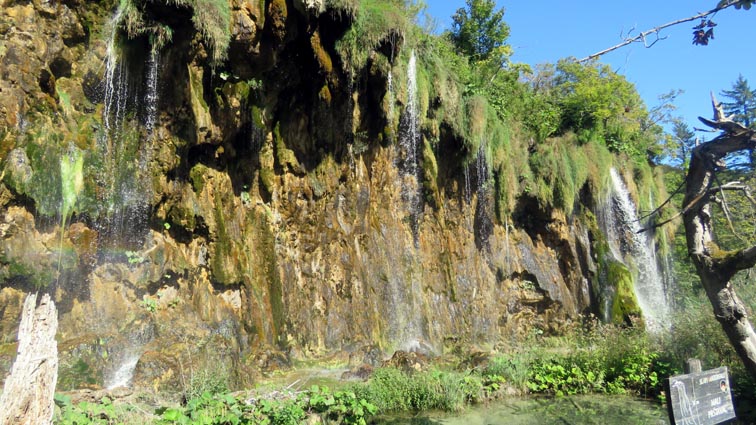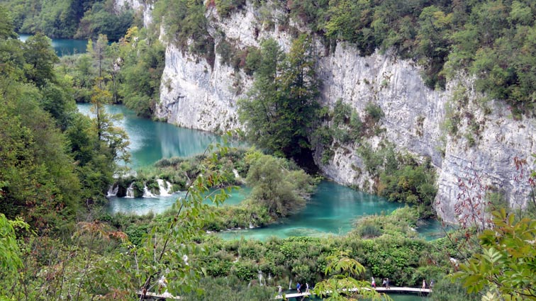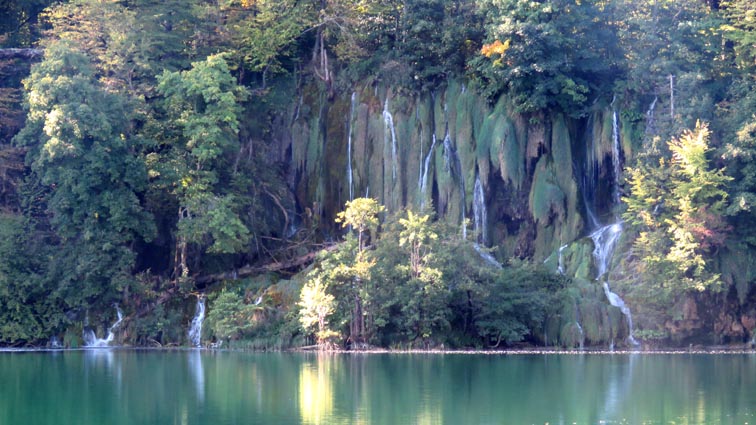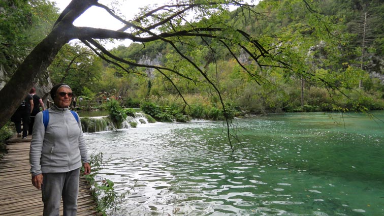 Un autobus vient nous prendre au camping à 9H00, pour aller visiter les lacs de Plitvice. Le Parc National de Plitvice comprend 16 lacs qui s'étagent de 636 à 480m d'altitude. Les eaux saturées en calcaire agglomèrent les débris végétaux, formant un dépôt solide et poreux : le travertin. Ces barrières naturelles créent des cascades spectaculaires, en particulier au printemps... Hélas, nous sommes ici à l'automne, au terme d'un été chaud où la sécheresse a sévi. Il n'y a donc que très peu d'eau dans les cascades (contrairement à celles de Krka).