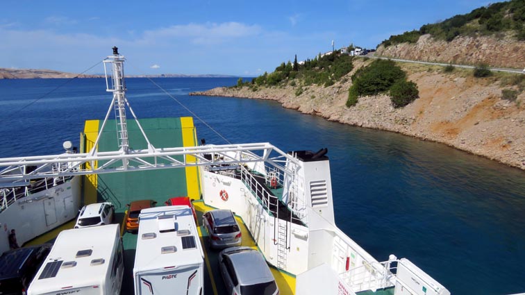 Nous embarquons sur un ferry à Gradina, pour rejoindre l'île de Pag.