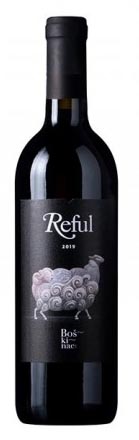 Le vin, Boškinac Reful que nous avons choisi en particulier en raison de sa belle étiquette, s'est révélé ultérieurement excellent à la dégustation. Composé de trois cépages : merlot, cabernet sauvignon et syrah, il présente des arômes fruités, avec des notes de poivre, une minéralité marquée et des tanins agréables.
