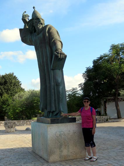 Toucher le gros orteil de la statue de Grégoire de Nin porterait chance, voila pourquoi le bronze est aussi brillant dans cette partie de son pied. Christiane ne manque pas de procéder à cette tradition...