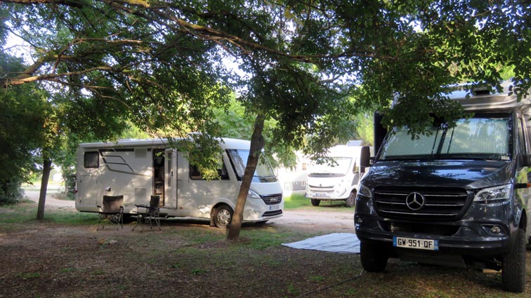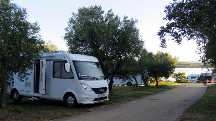 Notre arrivée au camping de Zaton est un peu compliquée, car il n'est pas facile de trouver un emplacement accessible, compte tenu de la quantité d'arbres aux branches basses... Le site n'est pas vraiment adapté pour nos véhicules, mais grâce à la solidarité des équipages, nous arrivons tout de même à manœuvrer pour stationner de façon acceptable...