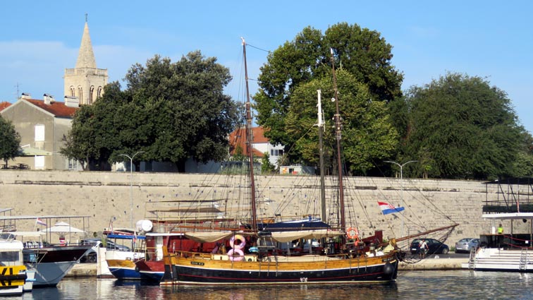 Nous quittons le camping à 7H20, pour aller nous garer sur les quais à Zadar, avant qu'il n'y ait trop de monde... Nous ne sommes pas certains que la brochette de vingt camping-cars alignés au pied des murailles de fortification de la ville sera appréciée par tout le monde, mais aucun incident n'est venu perturber cette option de stationnement...