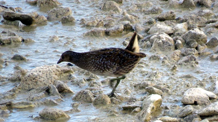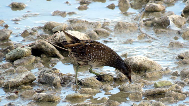 Nous repérons également une espèce que nous n'avions jamais rencontrée : la marouette ponctuée. Elle avance dans les vasières en hochant la tête d'avant en arrière et en pointant la queue vers le haut.
