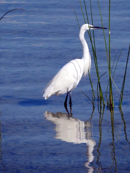 Nous cheminons sur le parcours d’observation aménagé avec des passerelles en bois dans les roselières sur 600m environ au départ du bâtiment d’accueil : (43°55’59.5’’ Nord – 15°30’41.7’’ Est).