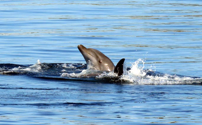 Après une heure de navigation, nous avons la chance d'observer un groupe de dauphins qui semblent nous faire un véritable spectacle...