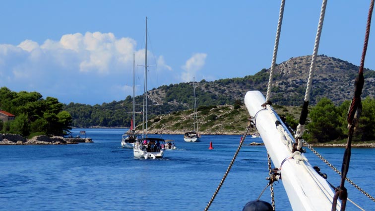 Nous accostons à Uvala Mir, ce qui signifie littéralement « la baie de la paix » en croate... En fait, cette baie fait partie du parc naturel de Telašćica. Le site est non seulement réputé pour sa beauté spectaculaire, mais aussi pour être le plus grand et le le plus sûr port naturel de l’Adriatique.