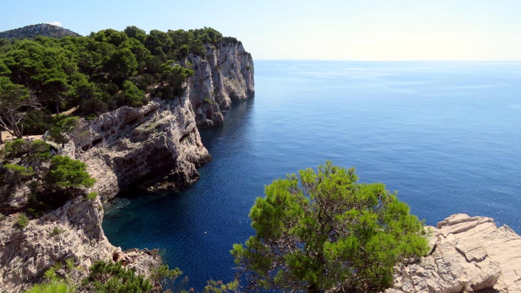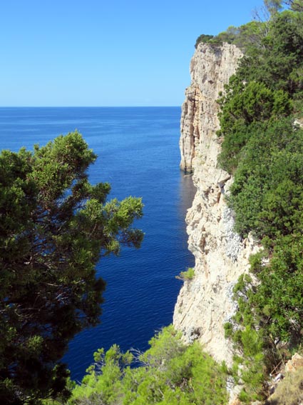 Notre guide Marina, qui nous avait fait visiter Zadar, est également du voyage. Elle nous emmène par un sentier aménagé avec quelques marches d'escalier, voir les falaises qui s’élèvent à 161 mètres au-dessus de la mer.
