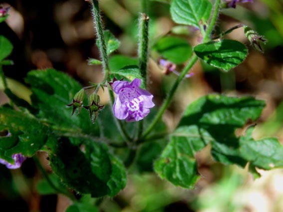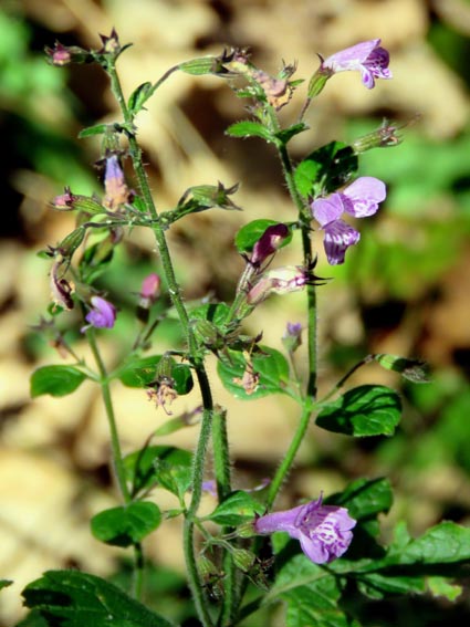 Famille des Labiacées. Plante vivace stolonifère, assez petite (30-60cm), velue-grisâtre, à odeur de menthe ; tiges érigées, à peine ramifiées, avec de longs poils. Feuilles ovales arrondies, grossièrement dentées, pétiolées, vert foncé. Fleurs roses à lilas, 15-22mm, avec des taches blanches sur la lèvre inférieure trilobée, en verticilles lâches formant de longs épis feuillus; calice tubulaire à deux lèvres, long de 6-8mm, poilu à l'ouverture, avec 13 nervures. Bois clairs, talus, rochers, sur sol calcaire, jusqu'à 1600m. Juillet - octobre |