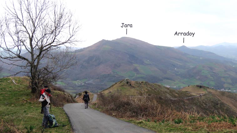 Nous démarrons d'Itxassou à 9H00, et prenons la D918 en direction de Saint-Jean-Pied-de-Port jusqu'à Ossès. Au niveau de Saint-Martin d'Arrossa, nous prenons la D948 sur la droite pour rejoindre Saint-Etienne-de-Baïgorry. En arrivant à Baïgorry, nous passons le quartier Eiheralde, puis au cœur du quartier Lesparze, nous tournons à droite sur la route nommée "Auzottipiko bidea". 250m plus loin, nous prenons la route interdite aux véhicules de plus de 6 tonnes qui monte sur la gauche. À 450m, nous tournons à droite sur "Irubeko bidea", et nous nous garons 750m plus loin, sur un terre-plein qui se trouve sur le côté droit de la route. |