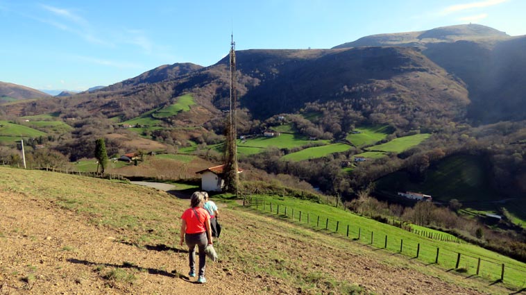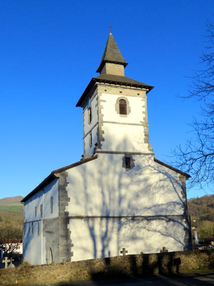 Bien que nous habitions dans le village, nous prenons la voiture pour aller nous garer sur le parking de l'église d'Itxassou, ce qui nous évitera quelques côtes sévères pour regagner nos pénates... |