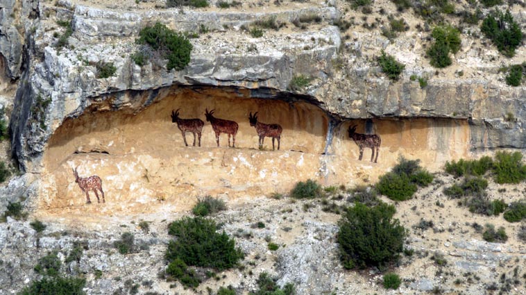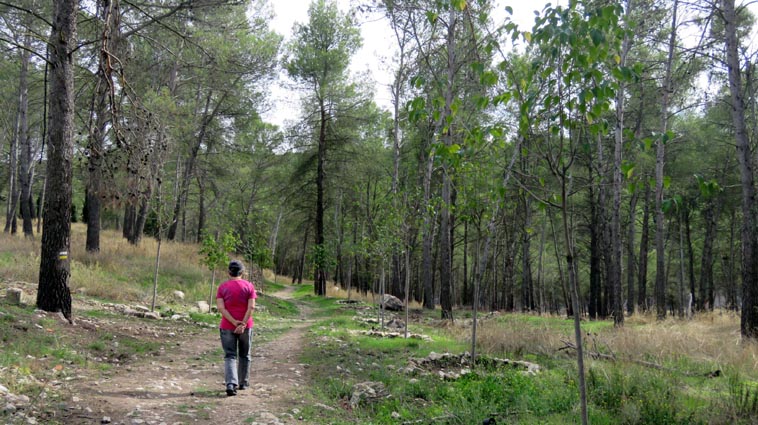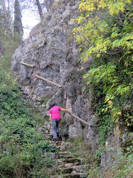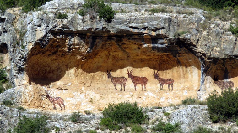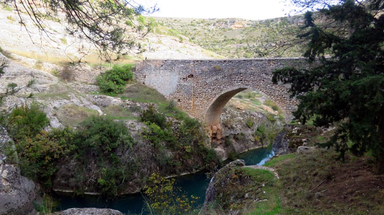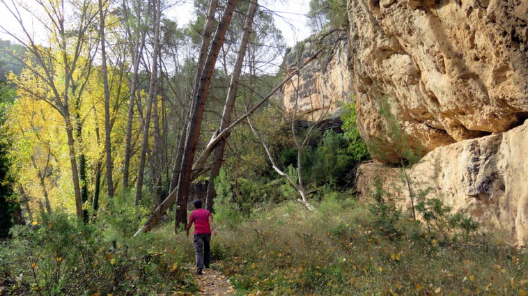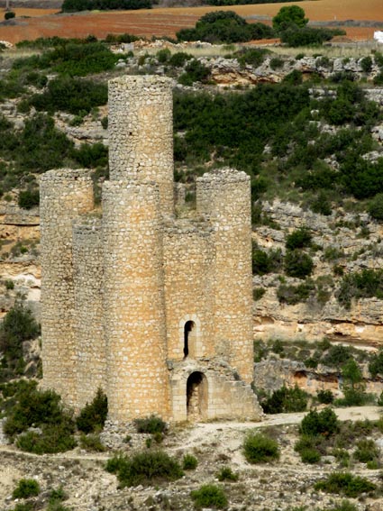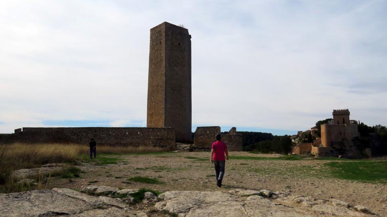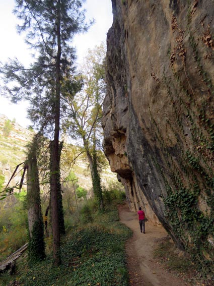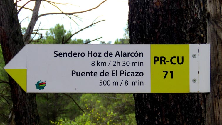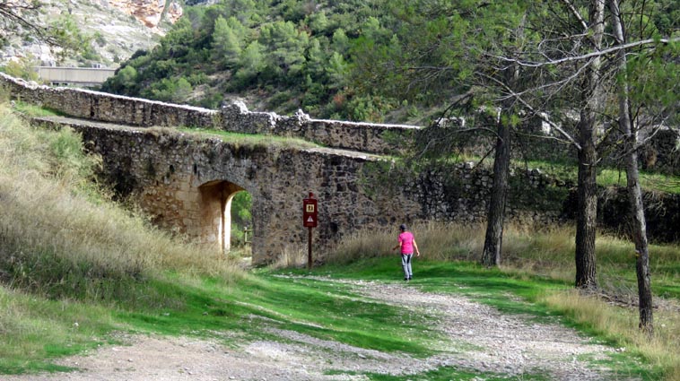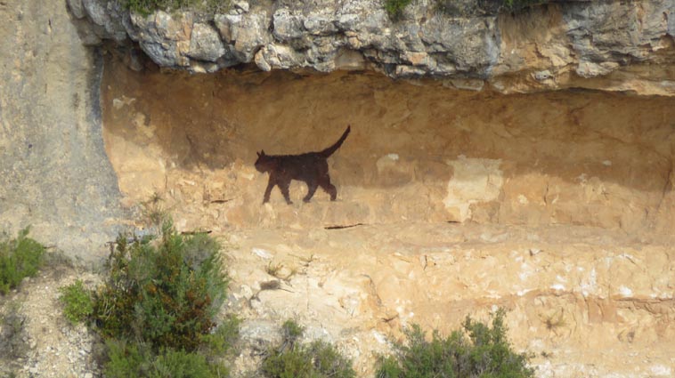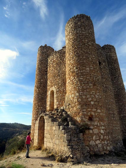 Après avoir fait une jolie balade sur la Route des Visages de Buendía, nous repartons en camping-car vers le Sud. Nous passons à Huete, Carrascosa del Campo, Montalbo et Honrubia, pour rejoindre Alarcón, une commune de la province de Cuenca, dans la communauté autonome de Castilla la Mancha. La cité, implantée dans un méandre du Río Júcar, a conservé la presque totalité de ses remparts. Ce fut successivement un site ibère, romain et visigoth, mais ce n’est seulement que sous domination arabe qu'Alarcon commença à prendre de l’importance. Après un long siège, elle fut conquise par Alfonso VIII qui la fit dépendre du Royaume de Tolède qu’elle ne quittera plus de toute son histoire, devenant un des bastions militaires de la Mancha en y gagnant le surnom de «l’Imprenable». Nous stationnons sur une plateforme sur la droite de la route, un petit kilomètre avant l'entrée dans le village, et nous commençons par manger dans le camping-car avant d'entamer notre randonnée. Depuis ce splendide belvédère, nous avons un point de vue de carte postale sur Alarcón, le río Júcar, et la péninsule de "Los Alarconcillos", formée par un méandre du cours d'eau. Nous sommes juste à côté de la Torre de las Armas, mais nous voyons aussi très bien l'étonnante Torre de Los Alarconcillos, et plus loin la Torre del Cañavate. - 13H18 - 818m (HOAL01) Nous démarrons du parking en direction de la Torre de las Armas. - 13H22 - 821m (HOAL02) Nous passons au pied de la tour où il n'est pas possible de monter, mais nous profitons d'un beau point de vue sur le château et les fortifications de la cité versant Sud. Nous prenons le sentier qui descend sur notre droite en ressortant de l'enceinte fortifiée. - 13H25 - 805m (HOAL03) Nous tournons à droite en arrivant à la route, en franchissant une première porte. Rapidement, nous voyons en contre-bas sur notre droite le Puente de Tébar et la Torre de los Alarconcillos. - 13H32 - 803m (HOAL04) Nous franchissons la Puerta del Calabozo. - 13H35 - 813m (HOAL05) Nous laissons le mirador de la Reina Doña Leonor de Plantagenet sur la gauche, pour franchir une troisième porte au pied du château. - 13H39 - 824m (HOAL06) Nous empruntons la calle "La Solana" qui monte sur la droite. - 13H41 - 835m (HOAL07) Nous tournons à droite sur la "calle Conde Alvaro de Lara", pour rejoindre la "Plaza de la Autonomia". Nous arrivons ainsi aux portes du château d'Alarcón, qui est aujourd'hui devenu un parador. - 13H48 - 836m (HOAL08) Nous allons voir le "Mirador de la Peña" qui se trouve au Nord de la place, et qui nous offre un beau point de vue sur la Torre de los Alarconcillos en particulier, et sur la Torre de las Armas. Mais, nous apercevons aussi, un peu en-dessous à droite de la tour, deux grottes ornées de peintures : l'une représentant des bouquetins ibériques et l'autre un chat (sauvage ?)... Nous repartons par la Calle Julio Poveda. Nous découvrons alors une peinture murale représentant un monsieur qui joue avec un chat, en lui présentant la clé de sa Mercédès... La situation est d'autant plus amusante que, juste à côté se trouve un chat ressemblant beaucoup à celui de la peinture, mais aussi que la clé est plus vraie que nature, identique à celle de notre nouveau camping-car. Il n'en faut pas moins pour que nous devenions aussitôt amis... Nous tournons à gauche pour aller voir le portail Sud de l'église Santa Maria del Campo, conçu comme un grand arc de triomphe de style plateresque par Esteban Jamete (13H52 - 842m (HOAL09)). - 14H00 - 842m (HOAL10) Nous passons devant l'église Santo Domingo de los Silos qui est en cours de restauration. Désacralisée, elle est utilisée aujourd'hui comme salle d'exposition et de réception. - 14H05 - 842m (HOAL11) Nous rejoignons la Plaza Infante Don Juan Manuel, où se trouve la mairie, à côté de l'église Saint Jean Baptiste. Elle aussi est désacralisée, mais les murs intérieurs sont peints par l'artiste contemporain Jesús Mateo. Son œuvre exprime la présence de l'homme sur Terre, les origines de la vie, les rêves, la voûte céleste, l'angoisse, la vie et sa finitude, avec un langage formel contemporain expressif d’une grande intensité dramatique. Ces peintures murales qui couvrent toute la surface de l'église ont été reconnues d'intérêt artistique et culturel par l'UNESCO. Hélas, nous ne pourrons pas la visiter car elle n'est ouverte que du vendredi au dimanche... Nous nous engageons dans la petite rue en face de l'église pour repartir vers le Sud. - 14H08 - 841m (HOAL12) Nous traversons la Calle Alvaro de Lara entre deux nouvelles fresques murales. Un âne qui nous regarde passer au travers de la porte de son écurie, et un tracteur, d'un beau vert "John Deere", dont on aperçoit la remorque au travers de la porte d'une cour... Nous arrivons ainsi à un parking, où nous prenons le temps de discuter un moment avec des camping-caristes de notre département. - 14H17 - 834m (HOAL13) À l'extrémité Ouest du parking, nous prenons un chemin qui descend en direction del l'Ermita Nuestra Señora de la Orden (Camino del cementerio - GR64). - 14H18 - 829m (HOAL14) Nous prenons le sentier qui part sur la gauche en direction du Sendero Hóz de Alarcón / Puente de El Picazo. Il est nommé Camino de las Moreras sur les cartes OpenTopoMap et OpenStreetMap. - 14H20 - 792m (HOAL15) Nous franchissons les murailles de fortification de la cité en passant la Puerta de Chinchilla, également connue sous le nom de porte El Picazo. C'est l'une des six portes encore debout de la cité. Elle servait d'entrée Sud, sur l'itinéraire reliant Alarcón à Chinchilla de Monte Aragón, dans la province d'Albacete, d'où son nom. Sa construction remonte au XVème siècle, avec des rénovations effectuées sous le règne de Juan Pacheco, marquis de Villena. Aussitôt après, nous remarquons que le sentier (balisé en jaune et blanc) a été partiellement taillé dans la roche. -