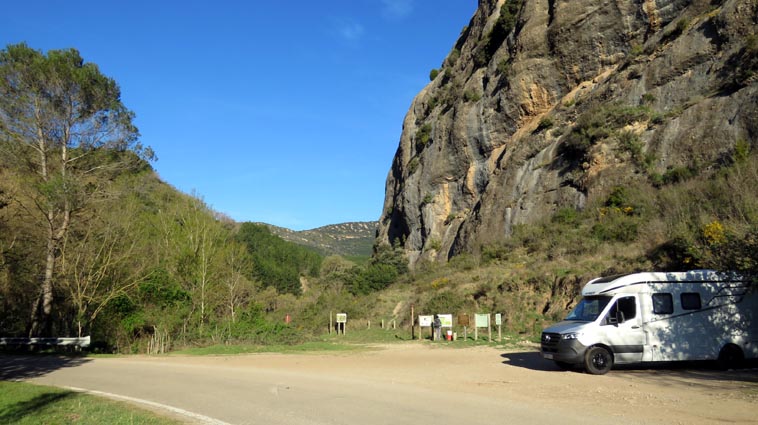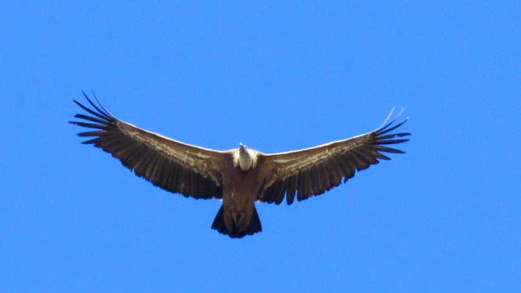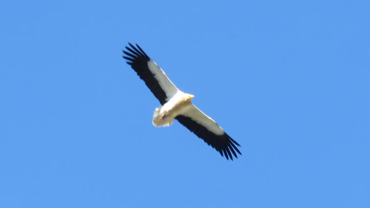 Après avoir passé une nuit parfaitement calme sur l'aire de stationnement des camping-cars de Boléa, nous sommes partis par Puiboléa et Banastás pour rejoindre la A-22 au niveau de Huesca, en direction de Barbastro. Nous sommes sortis à la sortie 99, pour prendre la A-1227/HU-330. Nous sommes passés à Loporzano et nous avons laissé Castilsabás sur notre droite. Un sanglier a traversé la route juste devant nous au niveau de Castilsabás. 7km après Castilsabás nous nous sommes garés sur le "Parking del Canal del Palomo" qui se trouve sur la gauche dans un virage en lacet de la route (500m environ après le refuge du Vadiello). Juste avant d'arriver, nous avons eu la chance d'observer un percnoptère d'Egypte qui planait à très basse altitude. |